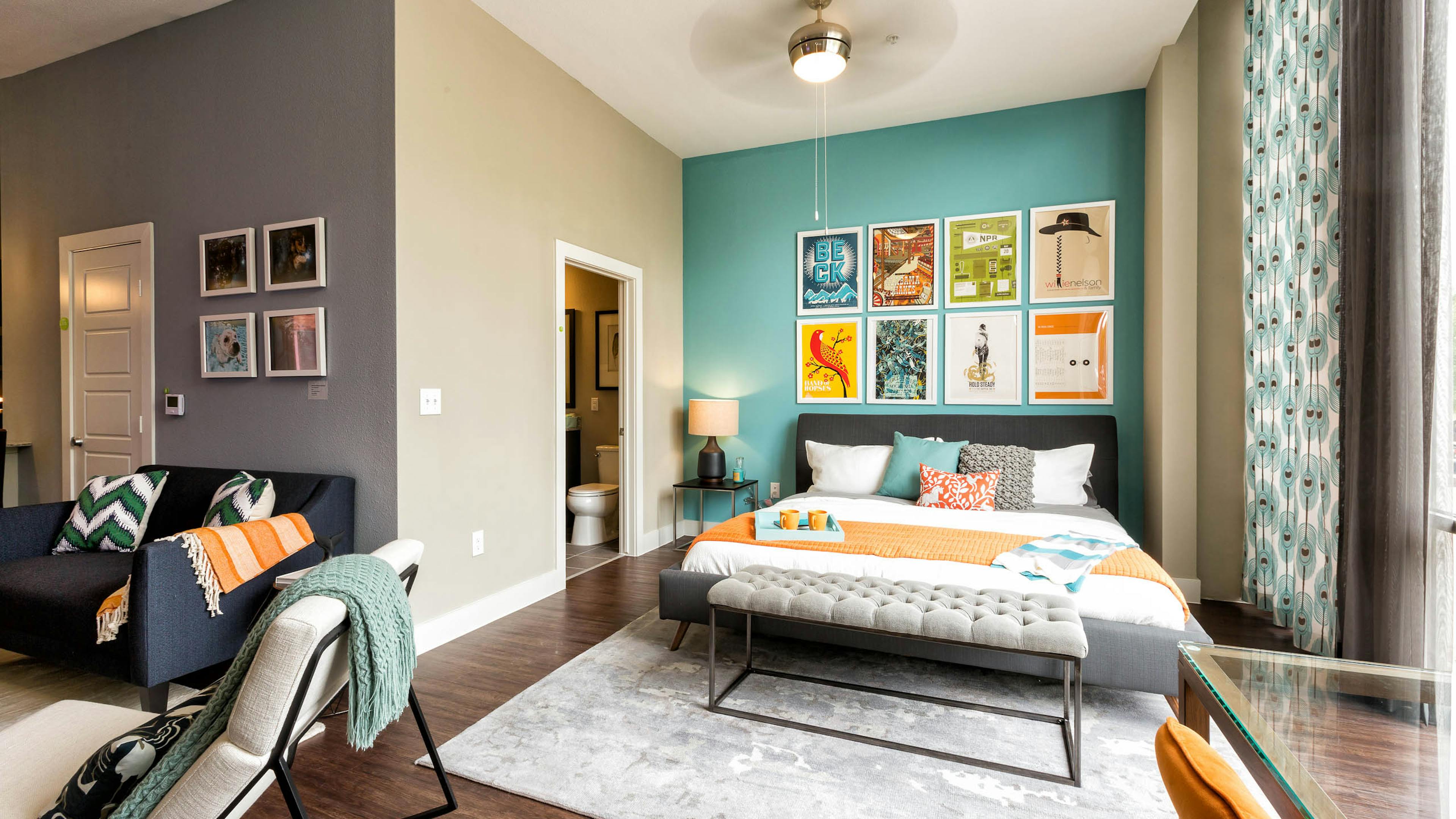 Our luxury apartments in Mueller, Austin, near Cherrywood offer a host of luxury amenities that are sure to make your stay one to enjoy. Residents can take advantage of a resort-style pool and sundeck, as well as private grilling and lounging areas. On-site retail and restaurants offer ample opportunities for entertainment, while a 24-hour fitness center is available to all residents at any time. Other convenient amenities at our pet-friendly apartments in Austin include work-from-home space, a reservable conference room and electric car charging stations.