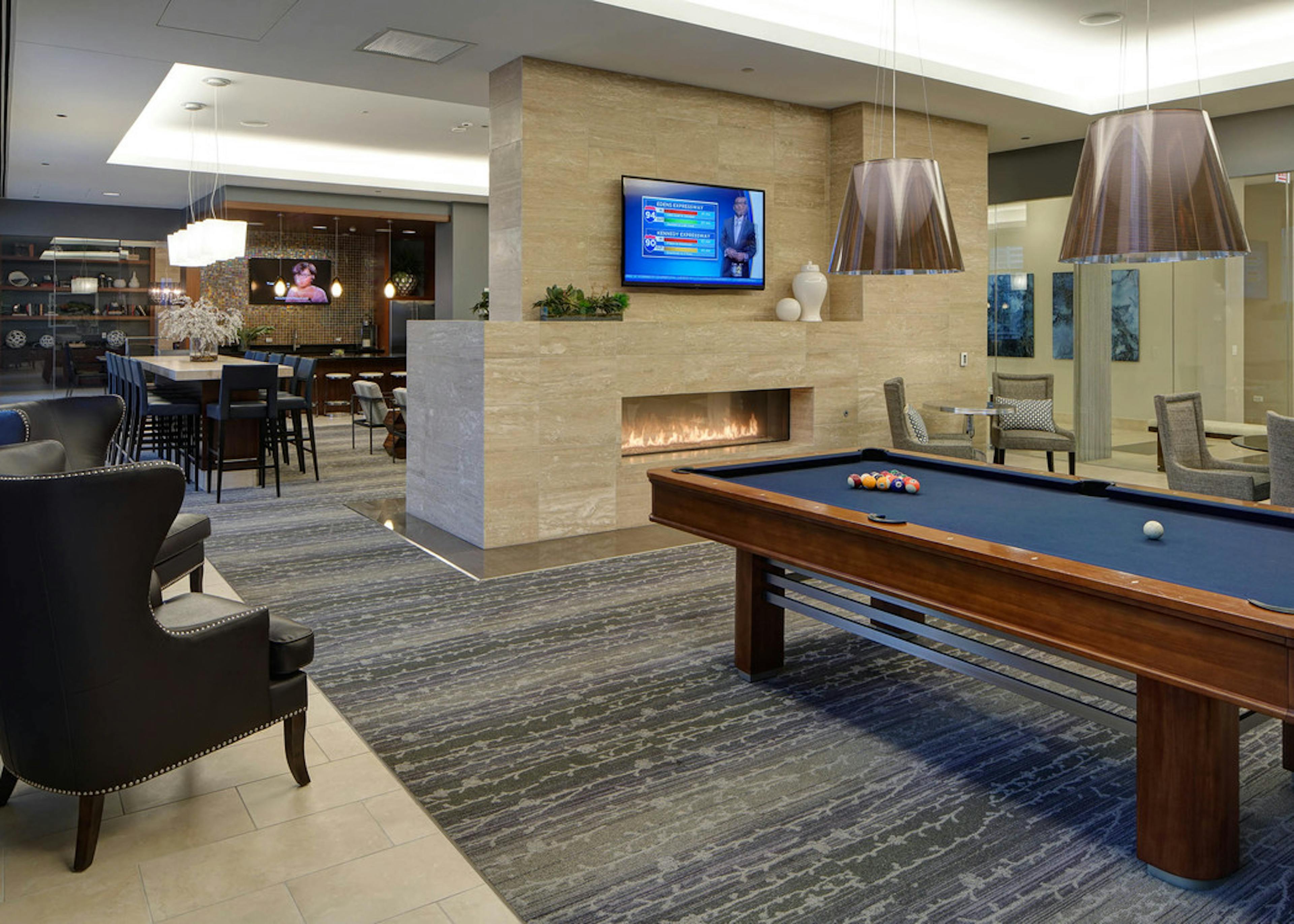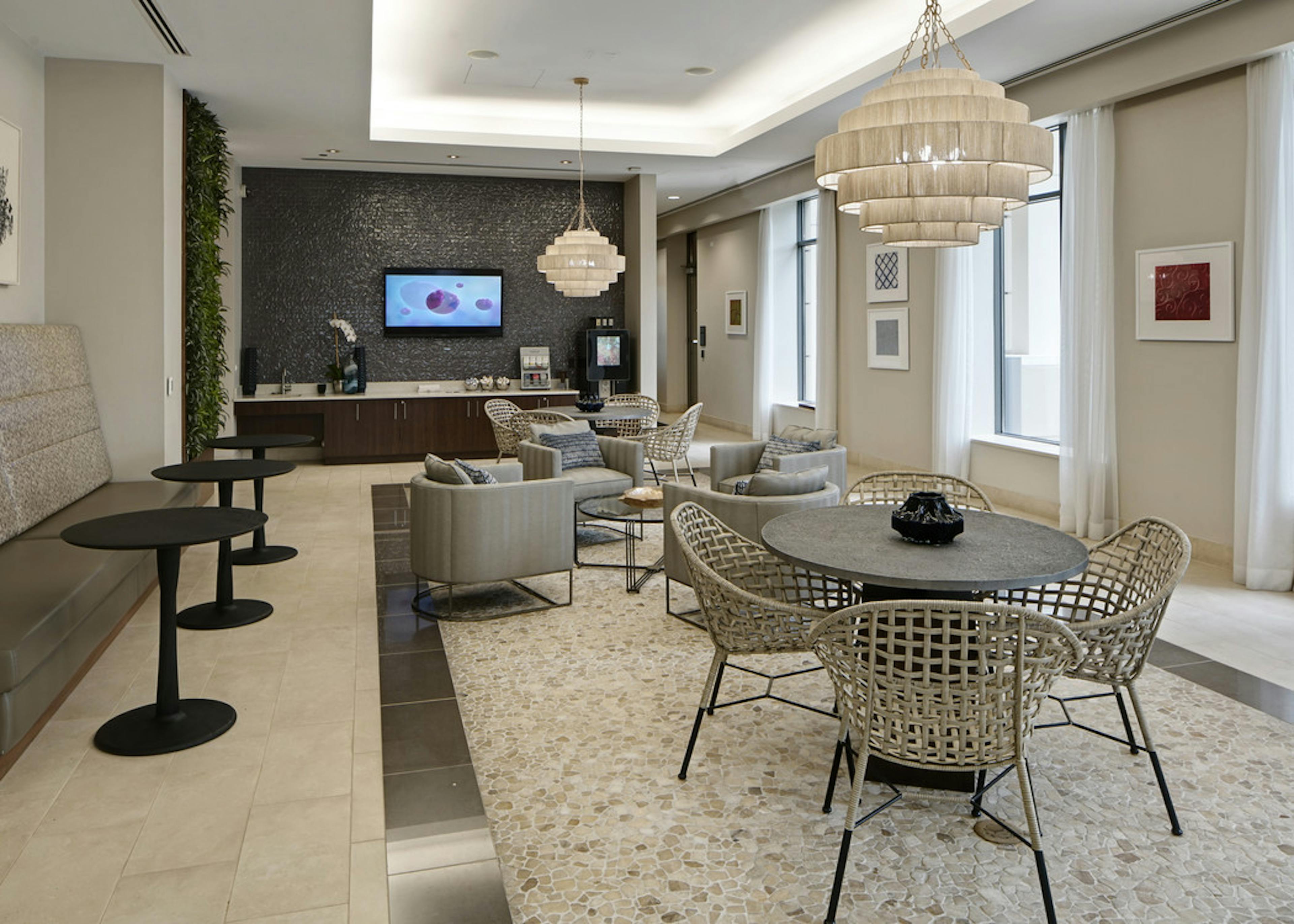 - Over 22,000-square-foot rooftop deck with fireplace, firepit & lounge areas