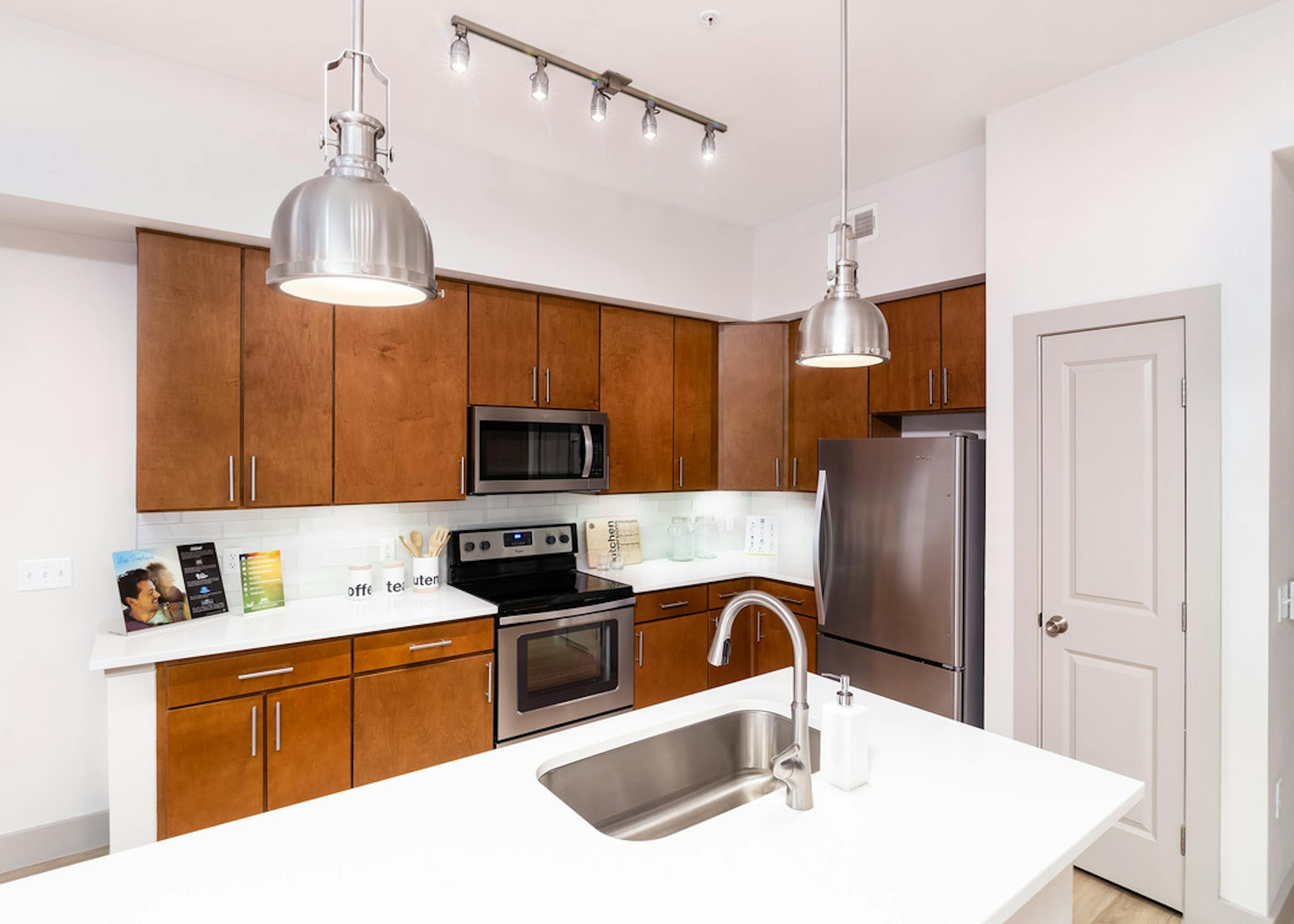 - Custom 42” cabinets with deluxe hardware & under-cabinet lighting