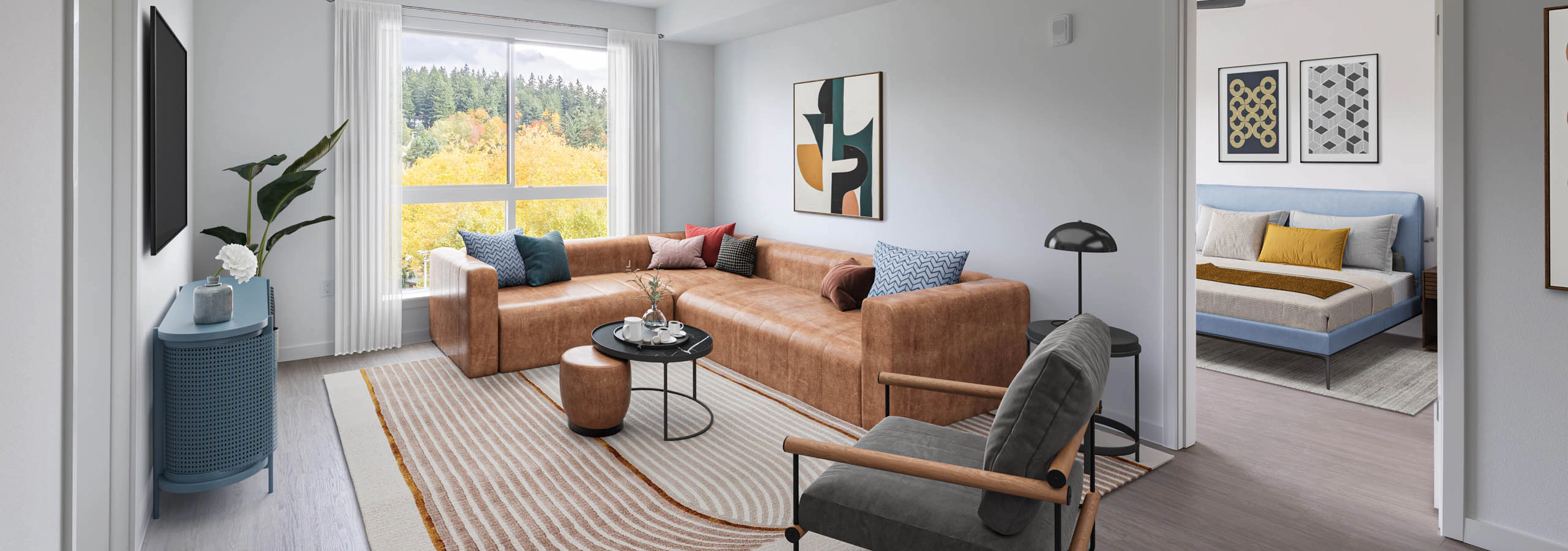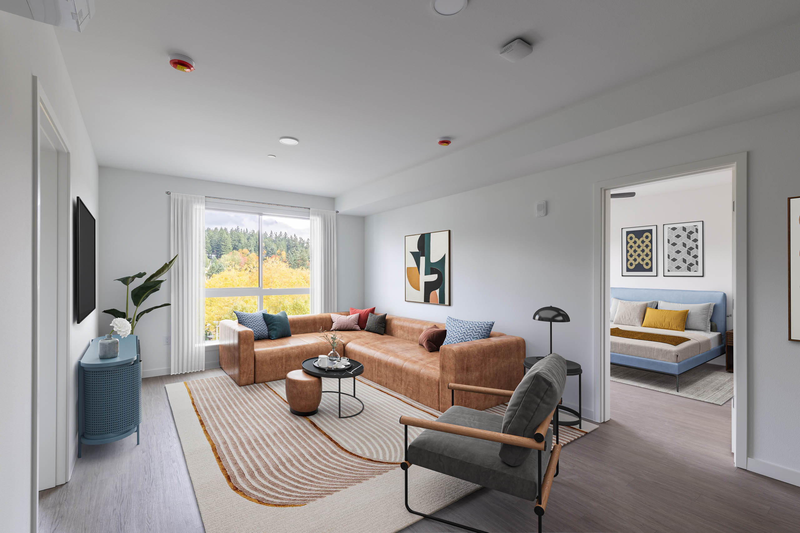 Choose from our collection of thoughtfully designed studio, one-, two-, and three-bedroom residences, each offering high-end finishes that redefine luxury living in Redmond. Every home features a chef-inspired kitchen with stainless steel appliances and quartz countertops, complemented by elegant black plumbing fixtures and stylish vinyl plank flooring throughout. Spacious layouts balance comfort and functionality, while modern conveniences such as smart access and air conditioning ensure effortless living. Select apartments also include mudrooms and pantries, adding an extra touch of practicality to your perfect retreat after exploring everything downtown Redmond has to offer.