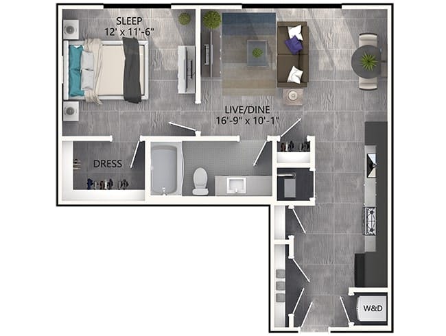 We offer a variety of dynamic floor plans for our luxury 1-bedroom apartments and penthouses, each of which features a gourmet kitchen outfitted with smart home stainless steel appliances.