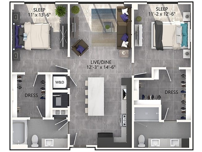 With spacious walk-in closets and wine chillers/beverage centers, our 2-bed, 2-bath apartments and penthouses have all the modern conveniences you’d want in a luxury apartment.
