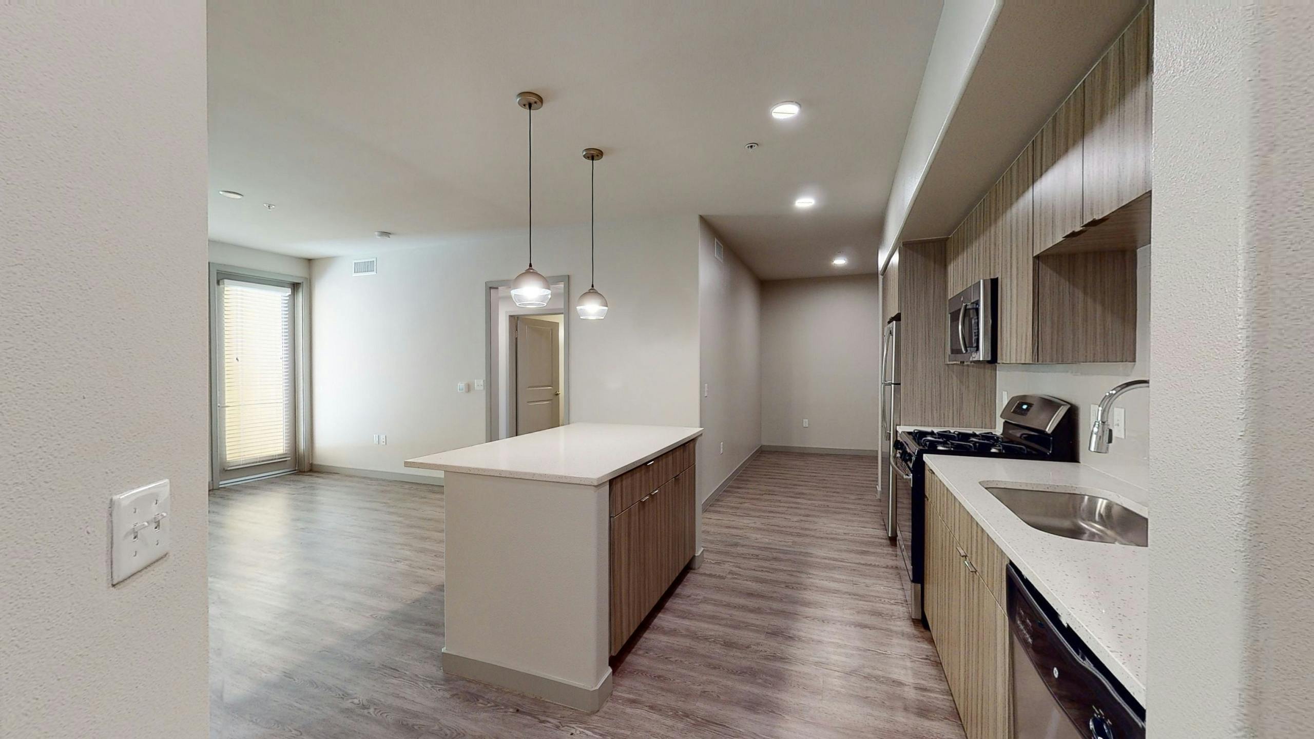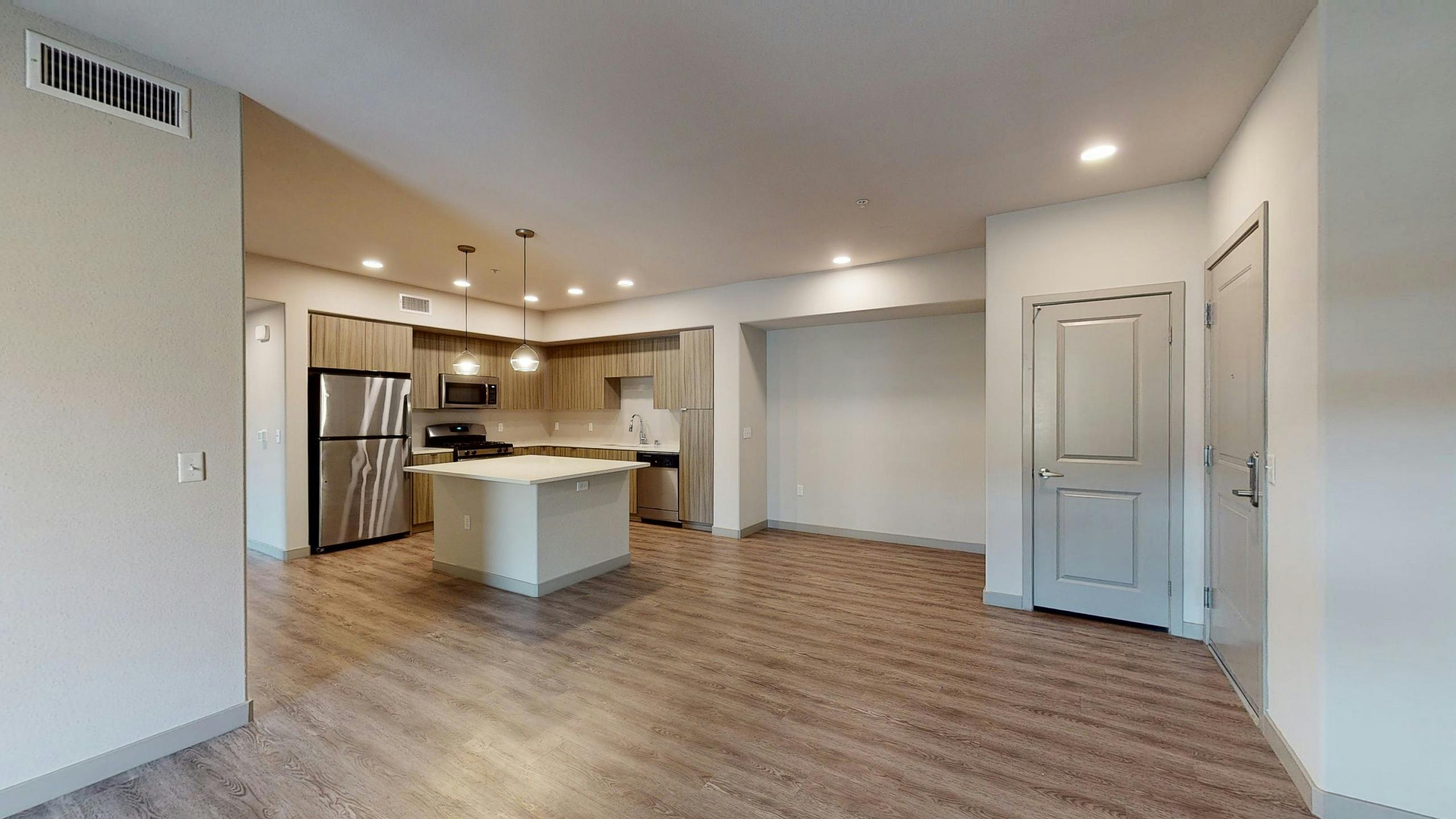 Throughout each apartment, wood-style plank flooring provides a modern, clean look that's both attractive and practical for your busy life. This flooring holds up to kids, pets and furniture and is perfect for the Southern California lifestyle where indoor-outdoor living is common.